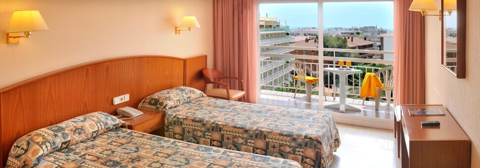 4 start hotel, with large bedrooms and two double beds in each room. It is located 500 meters from the beach and 1 km from the city center of Lloret. Outdoor pool is divided into 2 areas: adults and children. - Adults:17 m x 9 m, depth from 1 m up to 2.50 m - Children:4 m x 4 m, with a depth of 60 cm The pool is open from 9.00 to 21.00 hrs.